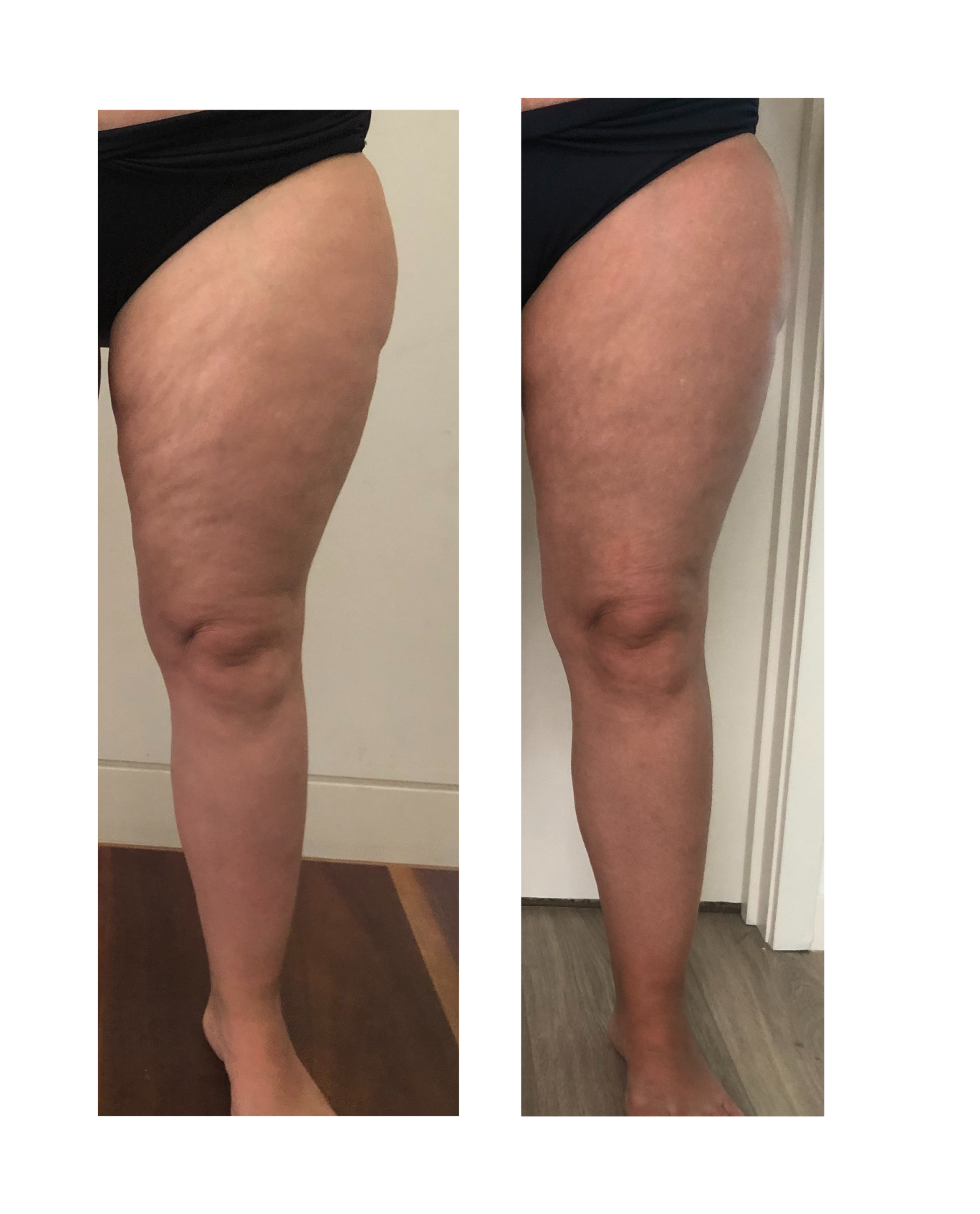 Exercise regularly: This can help to firm and tone the muscles in your legs, which can in turn help to reduce the appearance of cellulite. Cardio and strength training are both important.